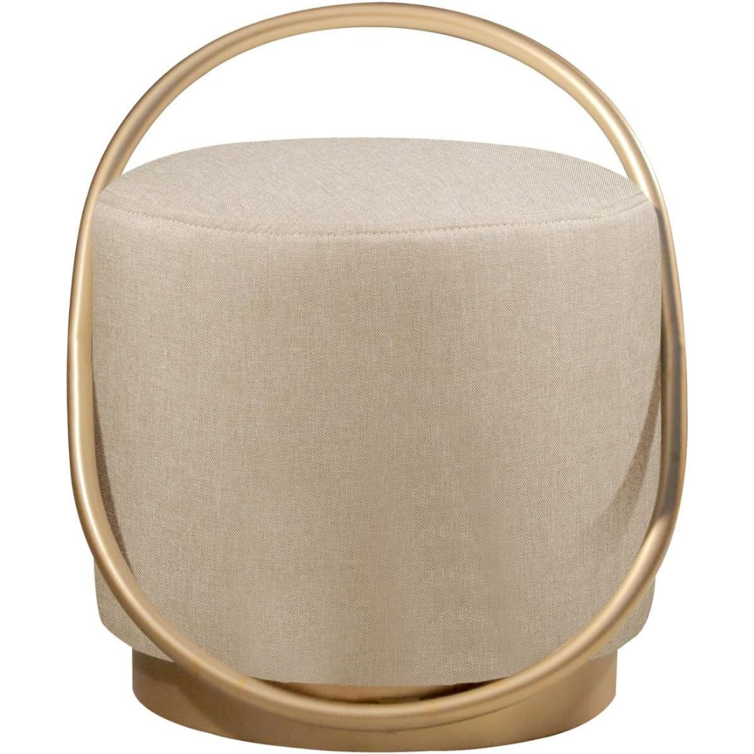 Puff Redondo Lunar em Linho e Base Metal Dourado Agarb Decor Cor:Linho Bege Claro